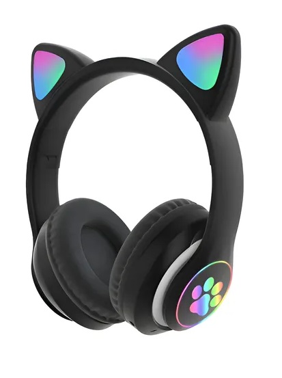 AURICULAR VINCHA BLUETOOTH LUZ LED OREJAS DE GATO NEGRO STN-28